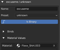 - Under options, set Is Binary to true, and expand the Material Values