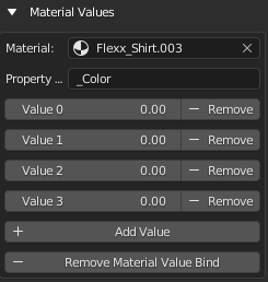 - Add four value slots and set them all to 0. Confusingly, 0 means visible for VRM. Setting them to 100 means invisible. You’ll need to know this when we go to VRM.